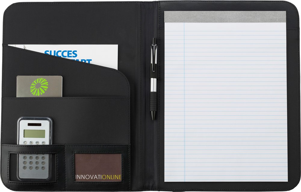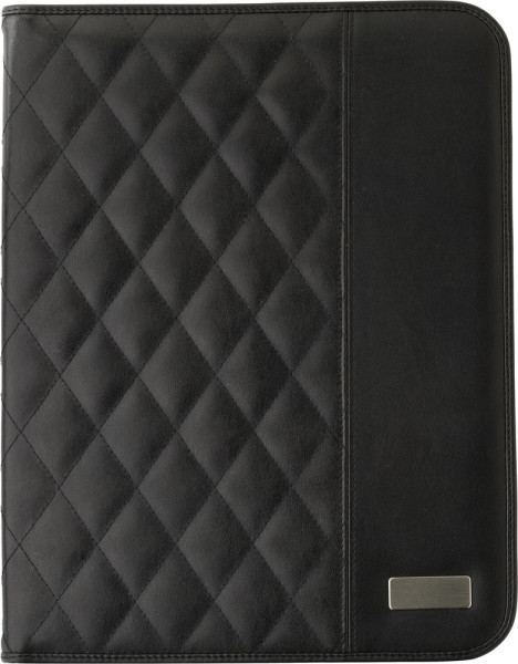 Conférencier A4 en PU muni d'une plaque métallique, livré avec bloc-notes, sans stylo.