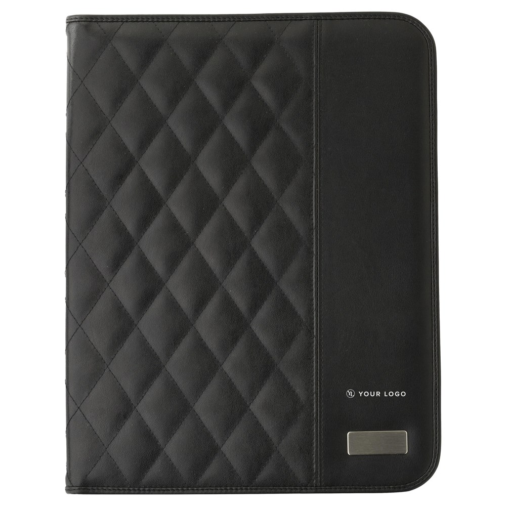 Conférencier A4 en PU muni d'une plaque métallique, livré avec bloc-notes, sans stylo.plus