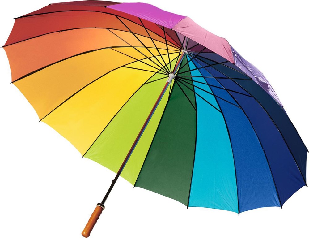 Parapluie grand golf en polyester 190T de 16 panneaux, mât et baleines en métal et poignée en bois.plus