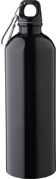 Gourde simple paroi en acier inoxydable recyclé (s/s304) d’une capacité de 750 ml, couvercle en PP et mousqueton en aluminium argenté.