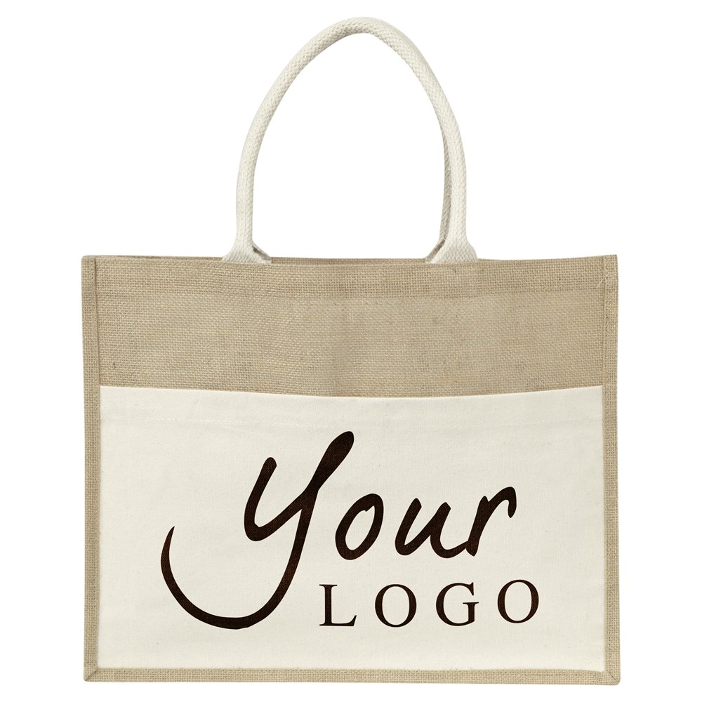 Sac shopping en toile de jute à anses courtes en coton et poche frontale.plus