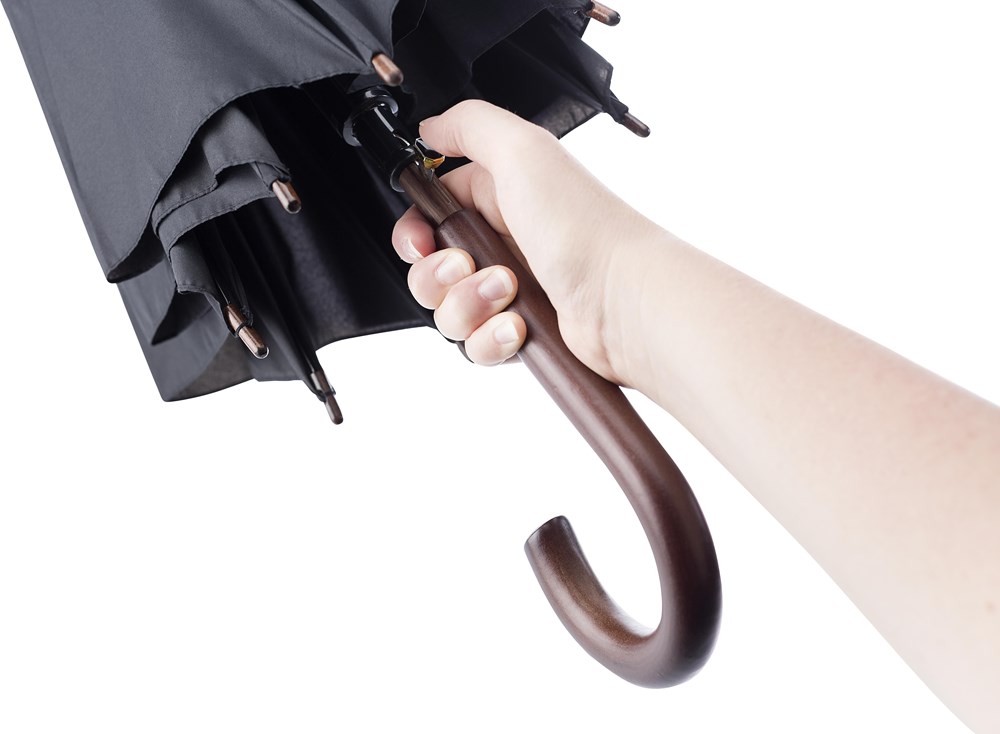 Parapluie automatique en polyester rPET 170T, mât et baleines en fibre de verre, manche en plastique.