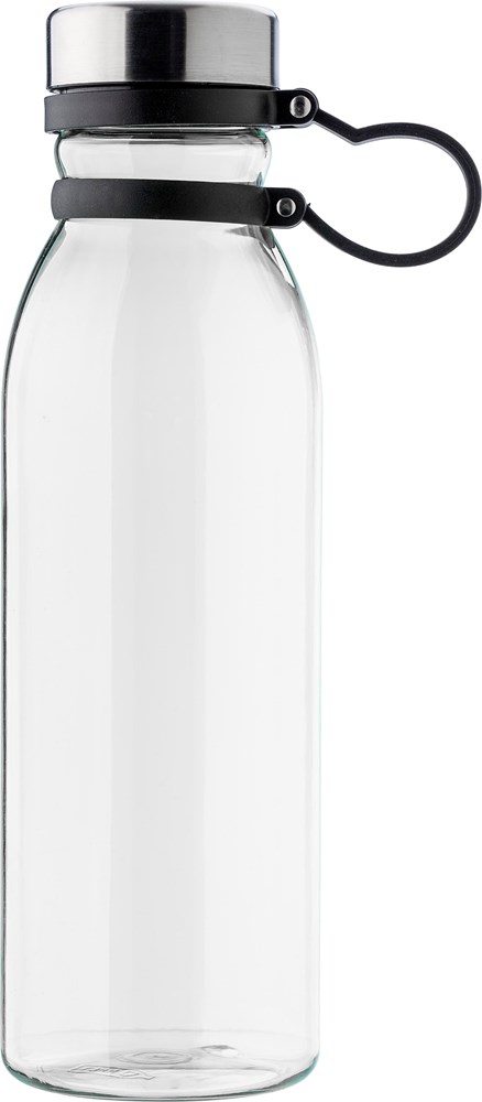 Gourde en rPET d'une contenance de 750 ml avec bouchon en acier inoxydable et attache en silicone.