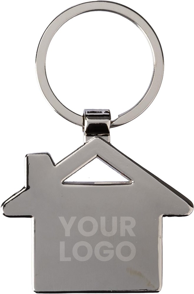 Porte-clés en zinc et bambou en forme de maison dans une pochette cadeau kraft.plus