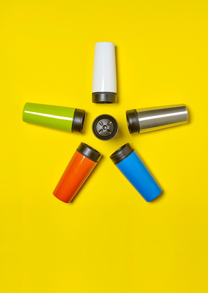 Mug double paroi en acier inoxydable et plastique d'une contenance de 450 ml.plus