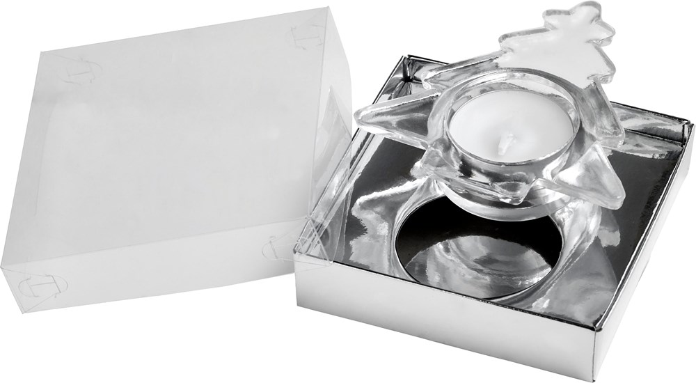 Support en verre avec bougie conditionné dans une boîte cadeau.plus