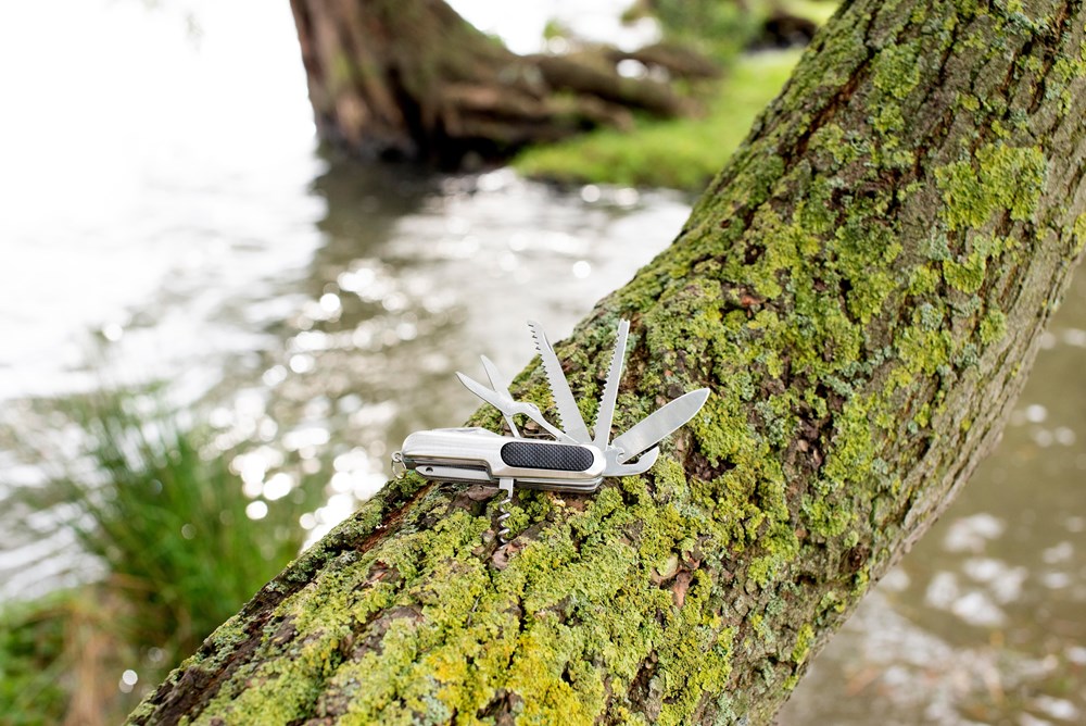 Canif 8 fonctions en acier inoxydable et gomme.plus