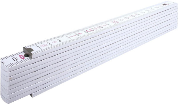 Mètre pliant double-face en bois de hêtre de 2 m. Le revêtement est résistant aux chocs et aux intempéries. Les articulations en tôle d'acier durcies à ressort en acier sont conçues pour durer. Schéma angulaire intégré de 15°, 30°, 45°, 60°, 75°, 90°, 105° et 120. Le mètre pliant est fabriqué en bois de hêtre de qualité issu de l’exploitation durable des forêts (PEFC).Classe de précison classe III.