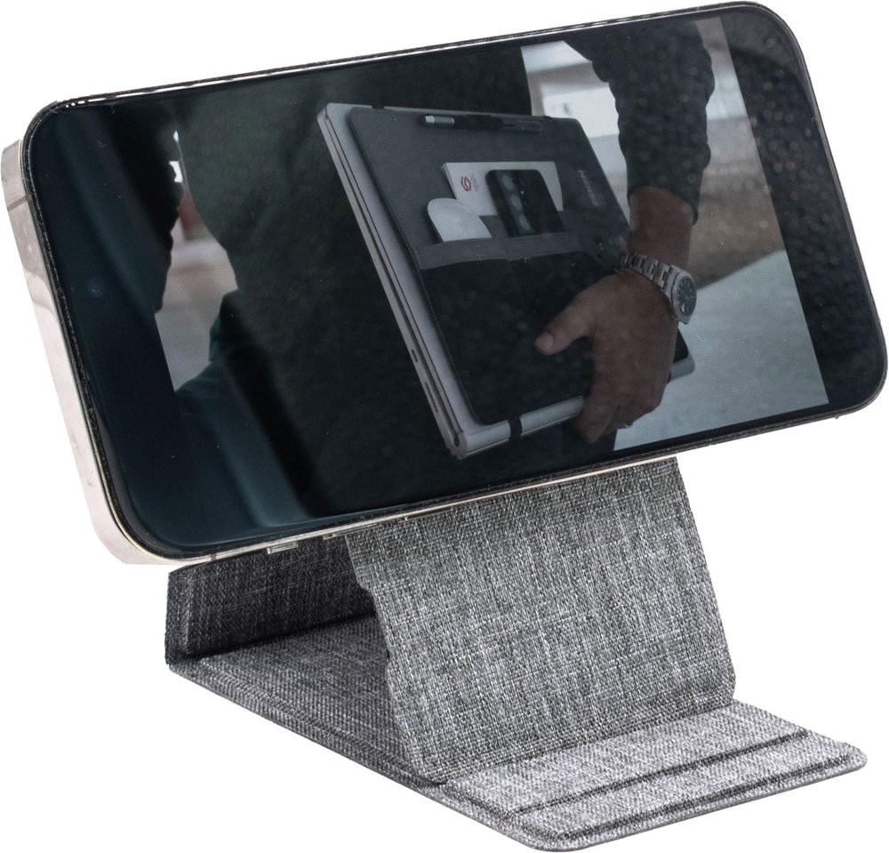 L'Ascend Charge Eco est un support de téléphone et de tablette durable fabriqué à partir de RPET, certifié par le Recycled Claim Standard (RCS). Il dispose d’une charge sans fil rapide de 15 W, est compatible MagSafe et comprend un autocollant MagSafe en silicone. Avec un angle réglable et un design pliable, c'est un accessoire pratique et écologique pour tout espace de travail. Brevet protégé pour une fonctionnalité unique.