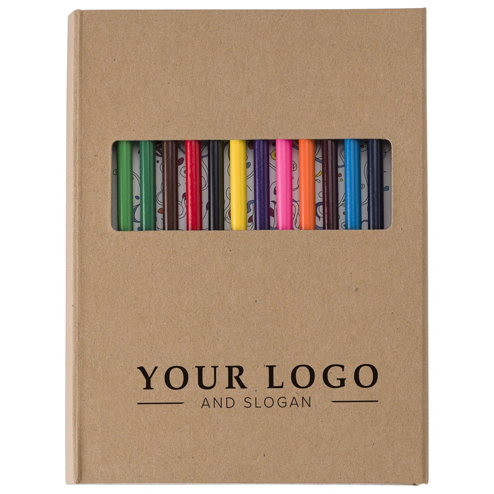 Carnet cartonné contenant 50 dessins à colorier et 12 crayons de couleur.plus