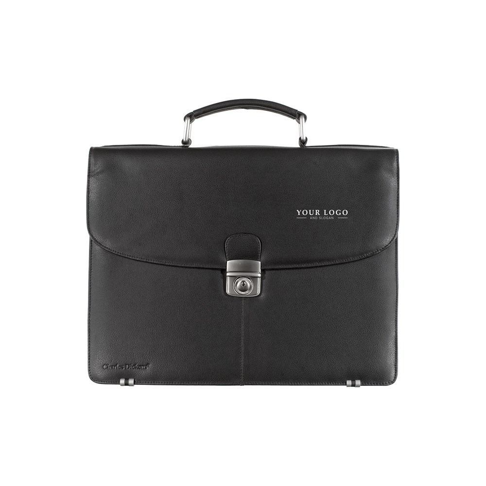 Sacoche porte-ordinateur de 15'' en cuir Charles Dickens® comprenant 3 grands compartiments, livrée dans un étui en nylon.
