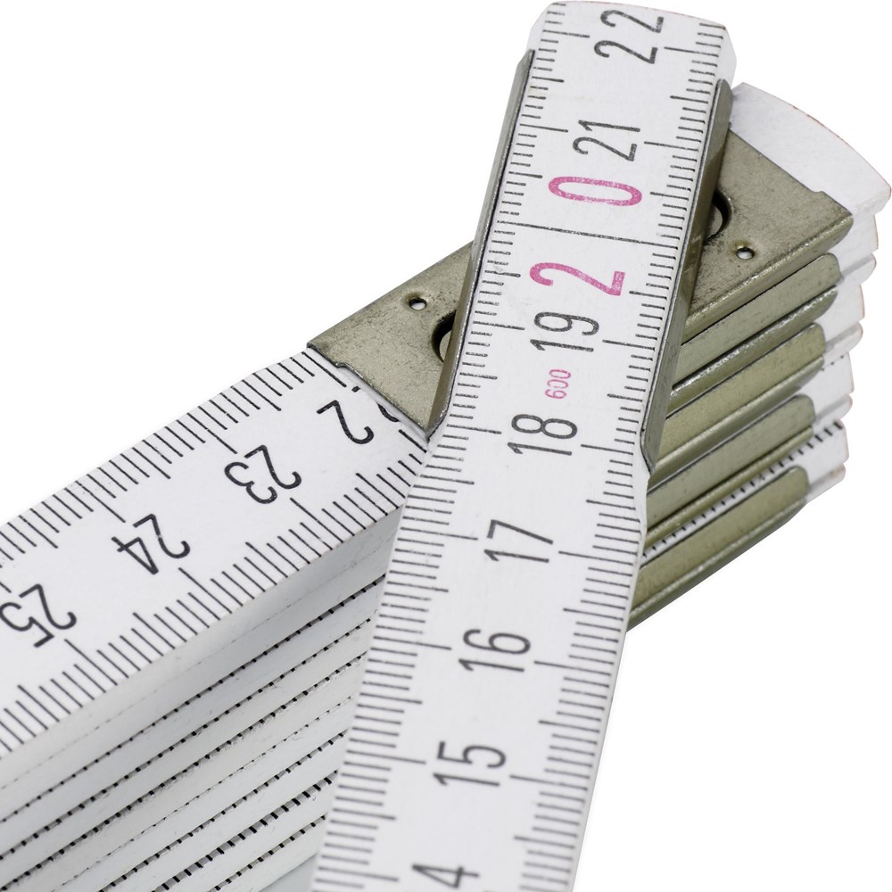 Mètre pliant double-face en bois de hêtre de 2 m. Le revêtement est résistant aux chocs et aux intempéries. Les plaques d'articulations galvanisées et les ressorts en acier durcis garantissent une précision durable et une ouverture et une fermeture en douceur. Le mètre pliant est fabriqué en bois de hêtre de qualité issu de l’exploitation durable des forêts (PEFC).Classe de précison classe III.