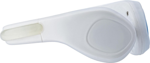 Pince à vélo en silicone et ABS munie de LEDS rouges clignotantes, piles incluses.