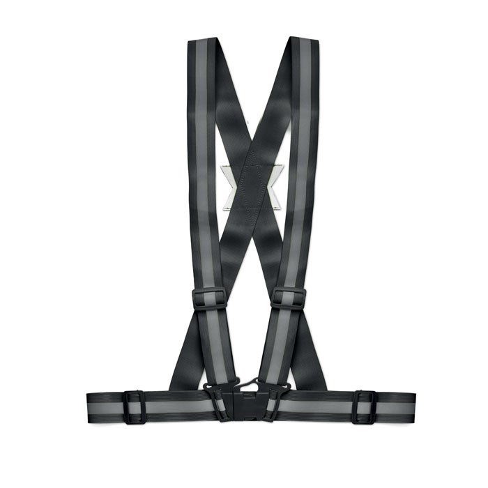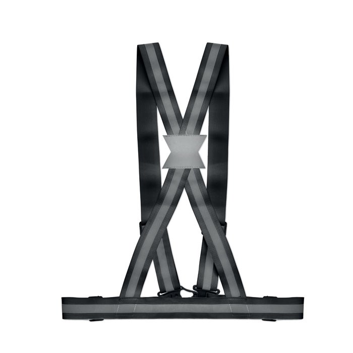 Bretelles de sécurité réfléchissante réglable à 360° avec bandes argentées. Objet uniquement promotionnel.