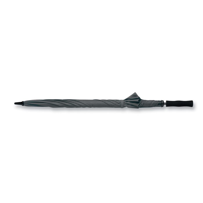 Grand parapluie anti-tempête en polyester 190T avec poignée en mousse. 8 panneaux. Ouverture manuelle. Diam 132 cm. Long Mât 76 cm.