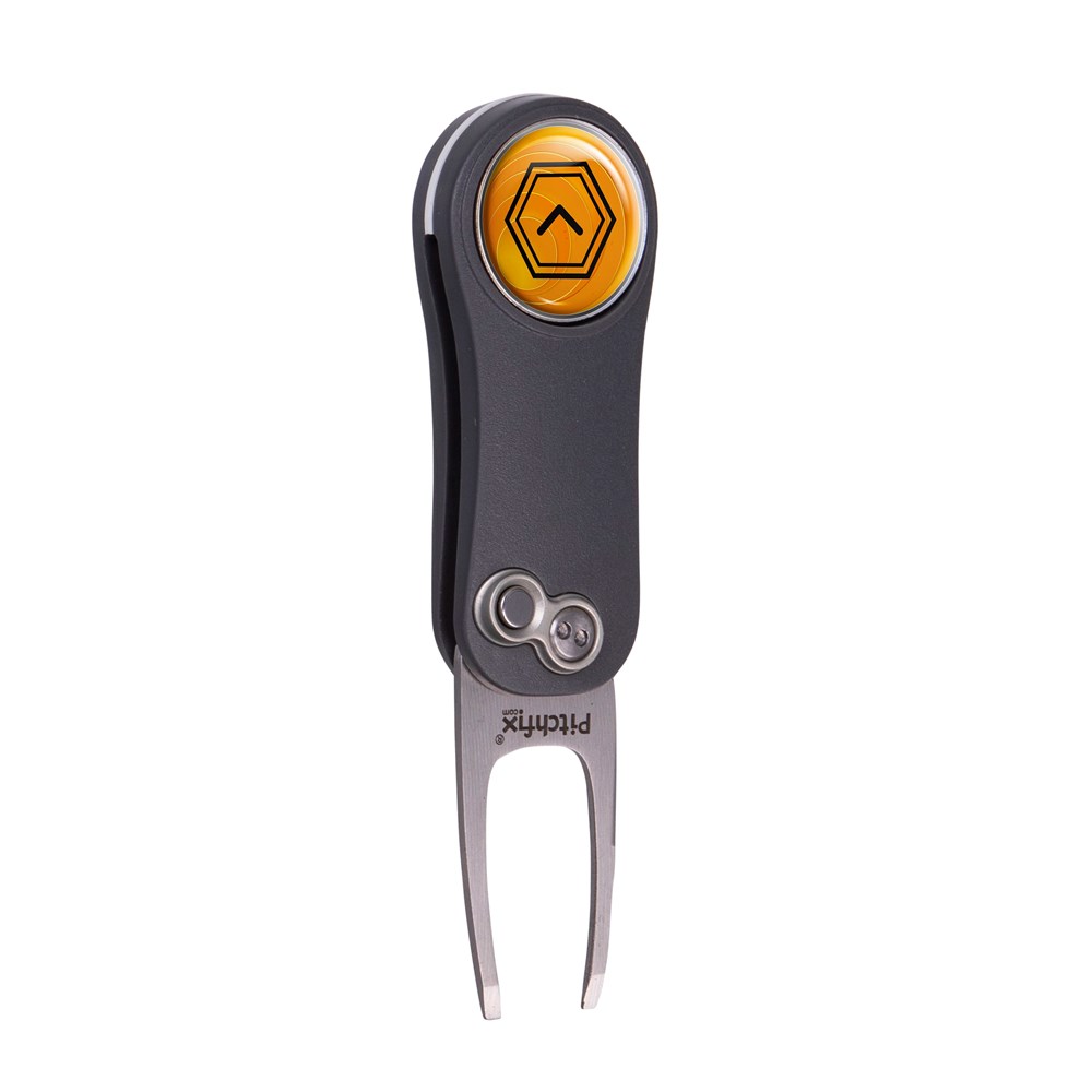Lichtgewicht inklapbare pitchfork gemaakt van hoogwaardig ABS kunststof, voorzien van een magnetische ball marker met doming