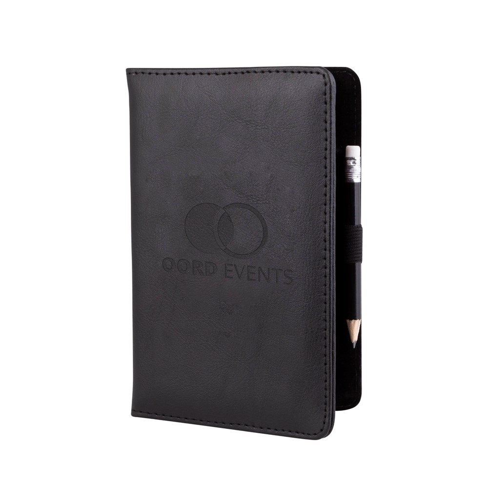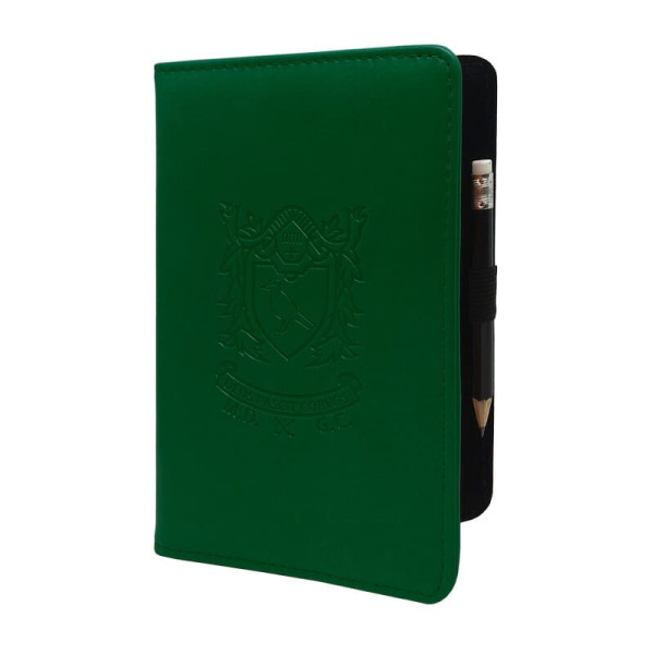 Lederen scorekaart houder voorzien van een embossing inclusief zwart potlood met gum, formaat 11...plus