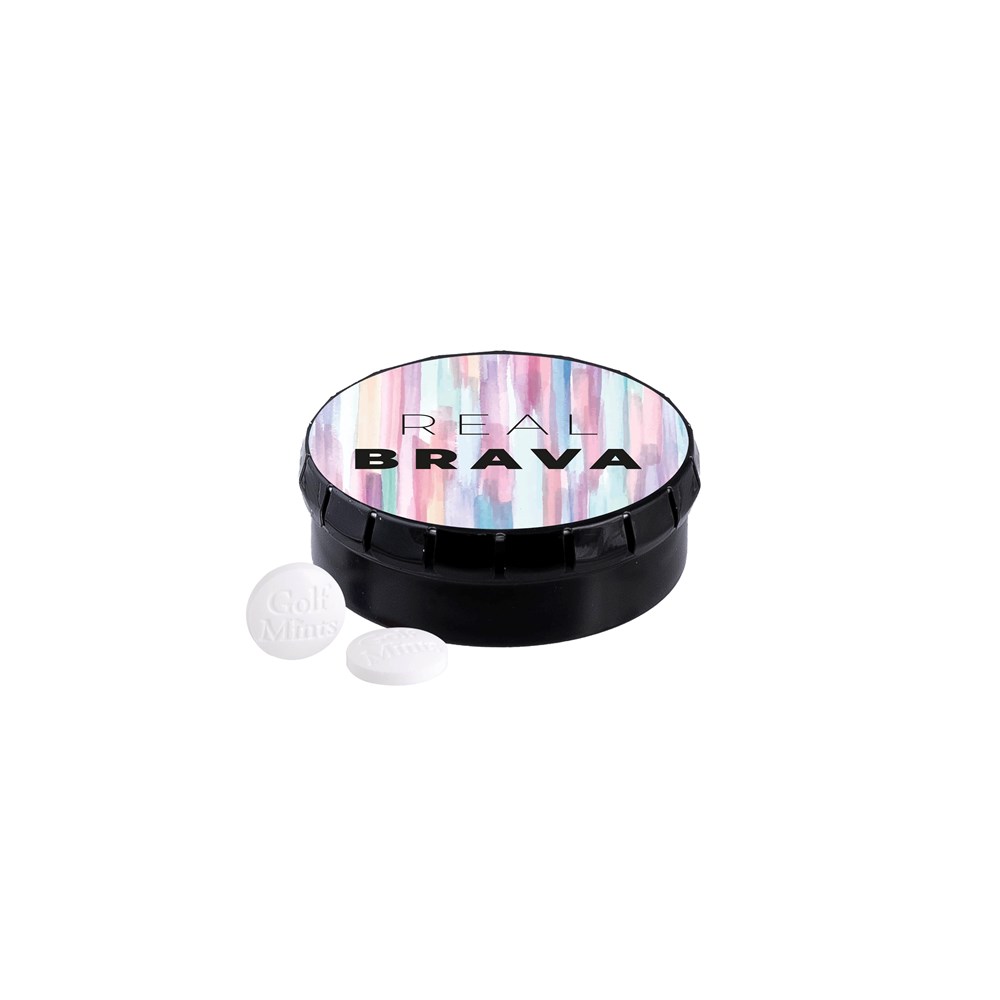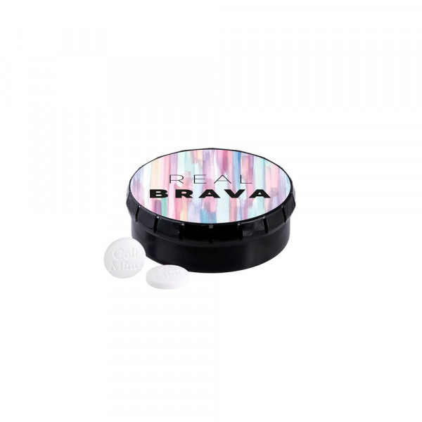 22 gram pepermunt in een blikje, inclusief ingrediëntensticker en seal. Formaat Ø 53 x 18 mm....plus