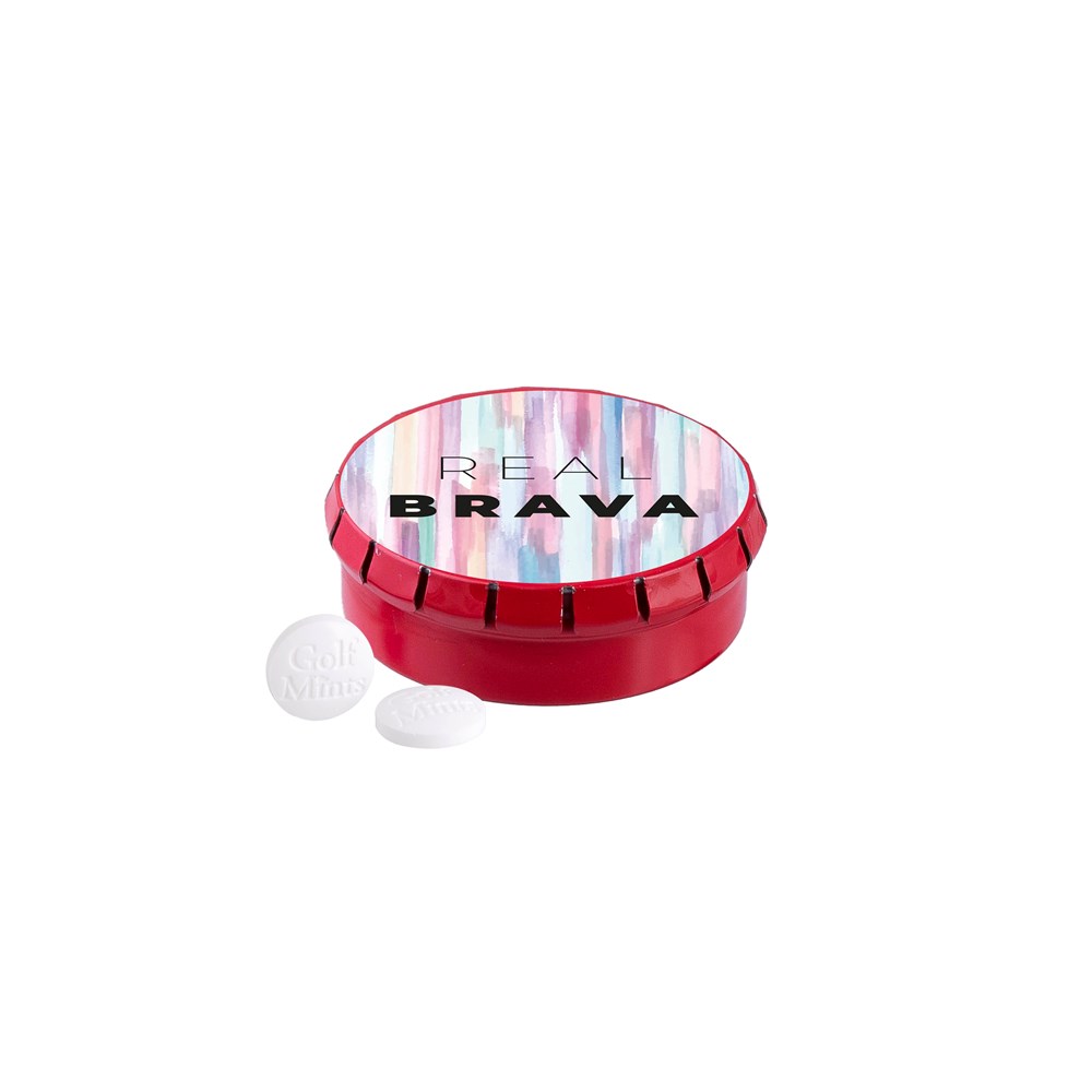 22 gram pepermunt in een blikje, inclusief ingrediëntensticker en seal. Formaat Ø 53 x 18 mm....plus