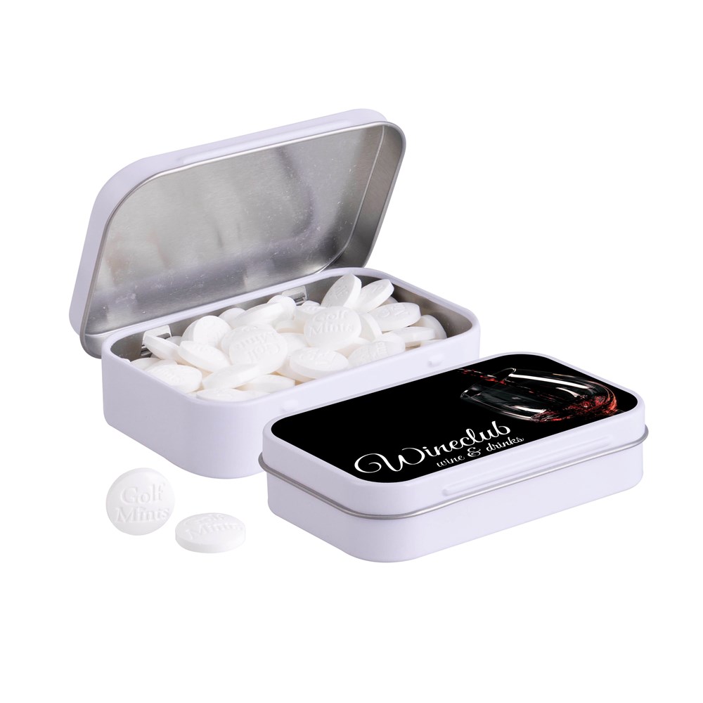 60 gram pepermunt in een blik, inclusief ingrediëntensticker. Formaat 99 x 63 x 20 mm....plus