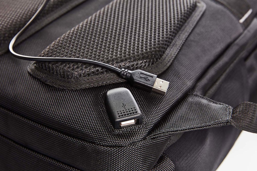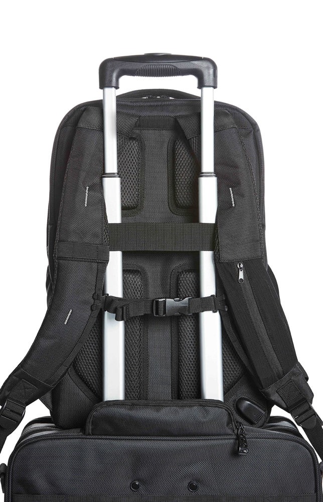 nauwgezet vervaardigde business rugzak met reflecterende elementen en led-bevestigingsmogelijkheid; groot hoofdcompartiment met 2-weg ritssluiting, notebookcompartiment voor 15” notebooks, gewatteerde binnenzak met ritssluiting en vlakke zak met ritssluiting; groot vak met velours-voering en 2-weg ritssluiting, geschikt voor 17” notebook; zak met ritssluiting aan de voorzijde; aan de zijkanten twee elastische netzakken, twee verborgen insteekvakken met ritssluiting; bevestigingslussen voor de trolleystang aan de achterzijde,verborgen vak met ritssluiting, USB-doorlaat met geïntegreerde verbindingskabel; uitvoerig gewatteerd draagsysteem met afneembare, verstelbare en elastische borstriem, elastische lussen voor bijvoorbeeld brillenpootjes, en een elastisch netvak met ritssluiting; gewatteerde handgreep, schuiver ritssluiting beschikbaar in de afgebeelde kleuren