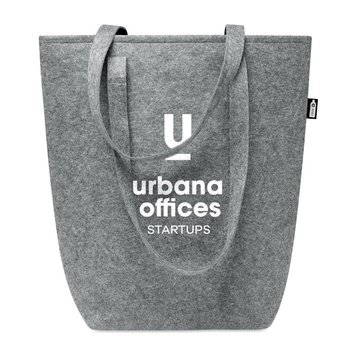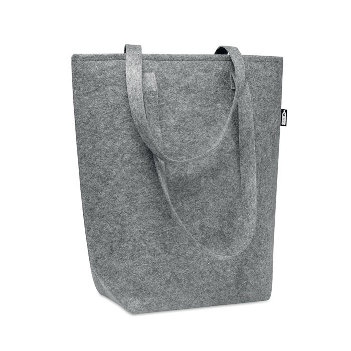 Sac shopping en feutre RPET avec anses longues et soufflet sur le fond. Épaisseur du feutre : 2 mm.