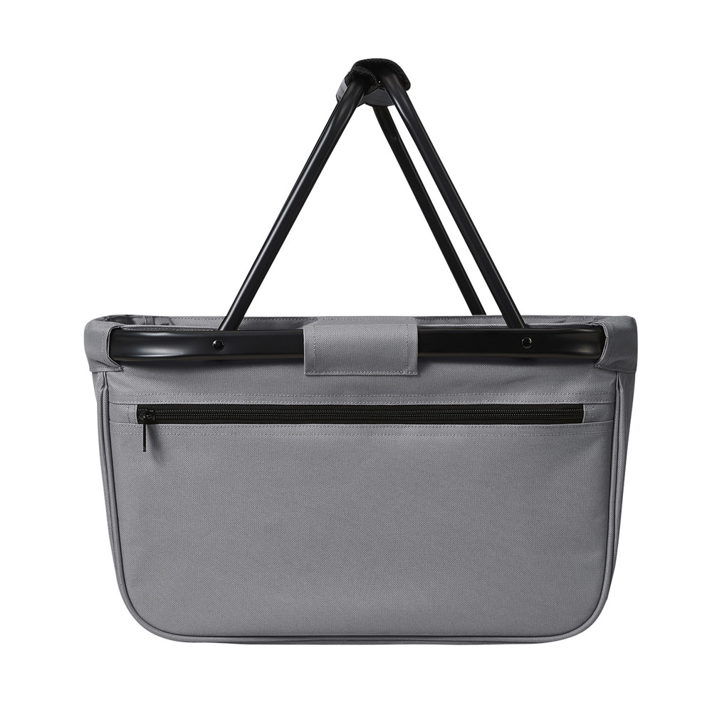 mooi vormgegeven boodschappenmand met aluminium frame en voorvak met rits; opvouwbaar