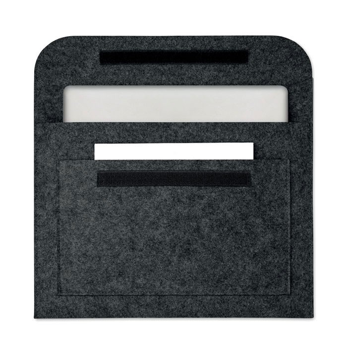 Porte-documents ou pochette en RPET feutre, pour ordinateur portable 15 pouces, épaisseur 2 mm, avec poche frontale et fermeture autoagrippante.