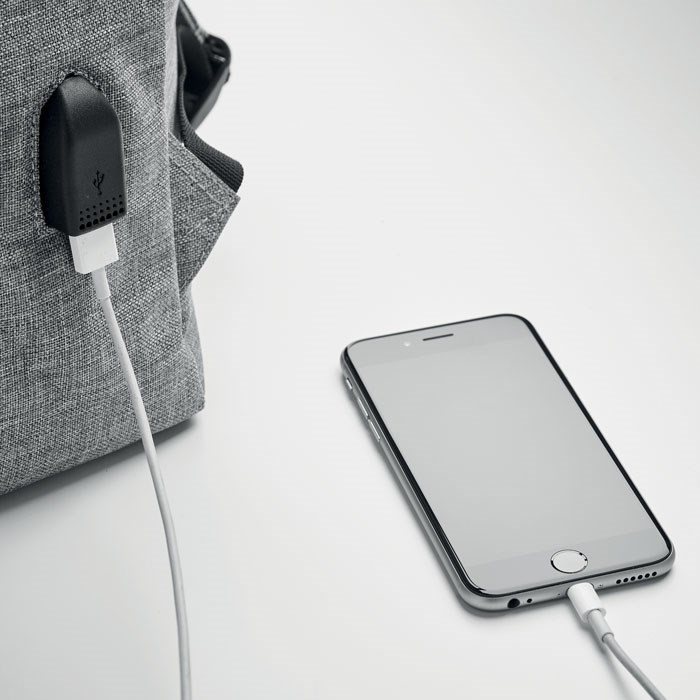Sac à dos ordinateur en polyester 600D 2 tons avec bandoulière rembourrée comprenant un compartiment interne principal pour ordinateur portable de 15 pouces et un câble de chargement USB. Comprend une fermeture à bouton-pression magnétique et un compartiment avant à glissière.