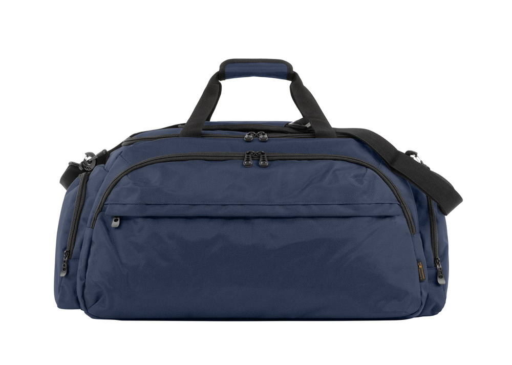 ruim hoofdvak met twee-weg rits; 2 voorvakken met rits; 2 zijvakken met rits; verwijderbare en verstelbare schouderband met comfortable schouderkussen; extra schoenen-vak; hengsels met verstevigde grip; voetjes aan de onderkant