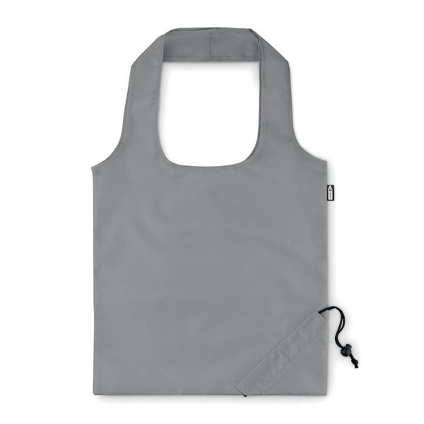 Sac shopping pliable en 190T en RPET avec cordon de serrage sur la poche.