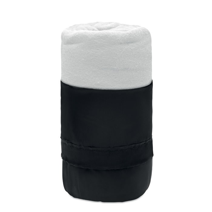 Couverture polaire en RPET avec pochette de voyage en polyester RPET. Polaire 180 gr / m².