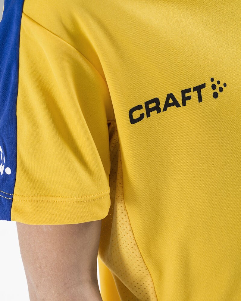 Maillot de compétition en tissu technique extensible avec une évacuation très efficace de l'humidité pour une performance maximale. Empiècements en mesh sous les manches pour réguler efficacement la température corporelle, un ajustement agréable et une mobilité optimale grâce à l’élasticité et à la coupe ergonomique. Coupe féminine. Encolure en V assortie aux rayures latérales contrastées.