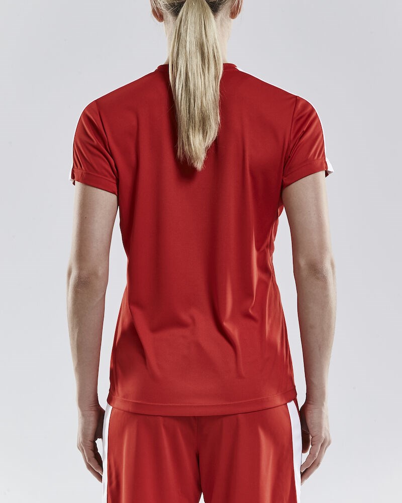 Maillot de compétition en tissu technique extensible avec une évacuation très efficace de l'humidité pour une performance maximale. Empiècements en mesh sous les manches pour réguler efficacement la température corporelle, un ajustement agréable et une mobilité optimale grâce à l’élasticité et à la coupe ergonomique. Coupe féminine. Encolure en V assortie aux rayures latérales contrastées.