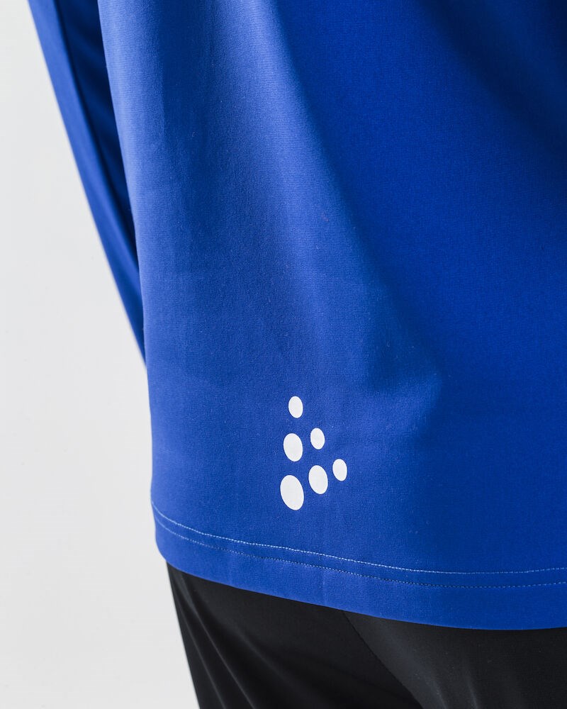 Haut doux et agréable pour l’entraînement et l’échauffement en tissu technique pour une évacuation optimale de l’humidité. Courte fermeture à glissière en haut pour régler simplement et rapidement la ventilation.