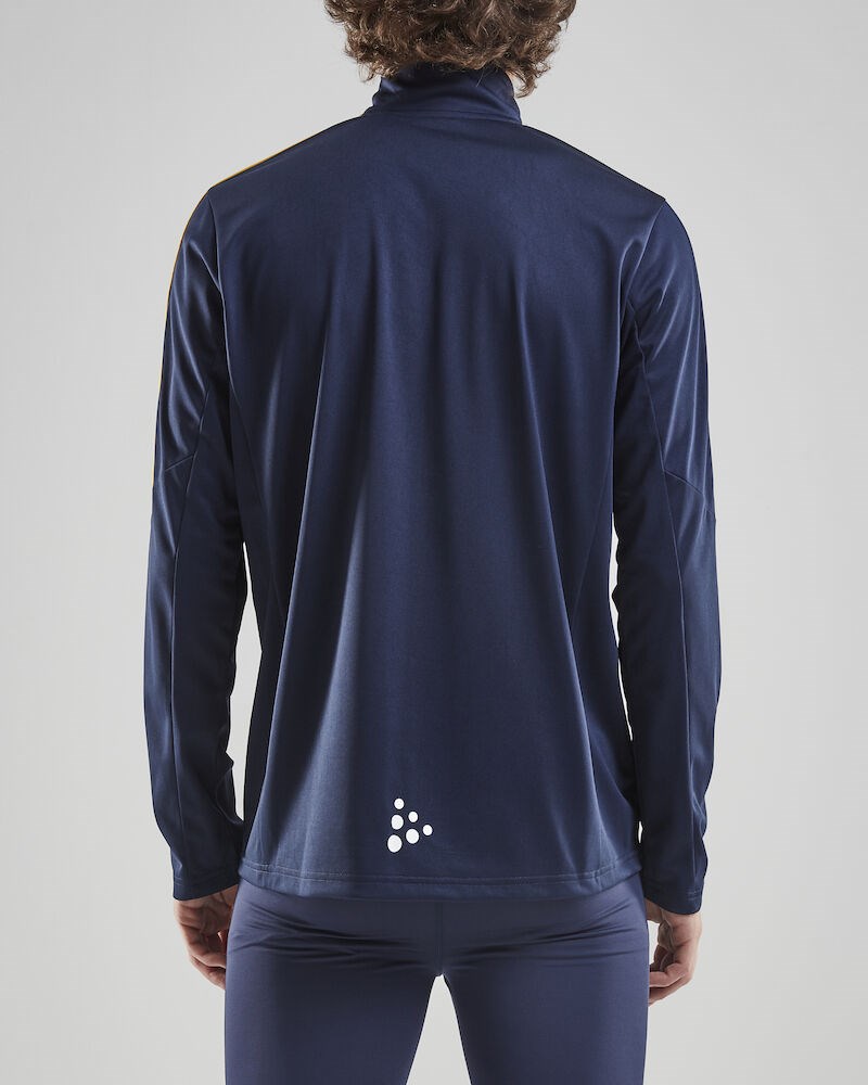 Haut doux et agréable pour l’entraînement et l’échauffement en tissu technique pour une évacuation optimale de l’humidité. Courte fermeture à glissière en haut pour régler simplement et rapidement la ventilation.