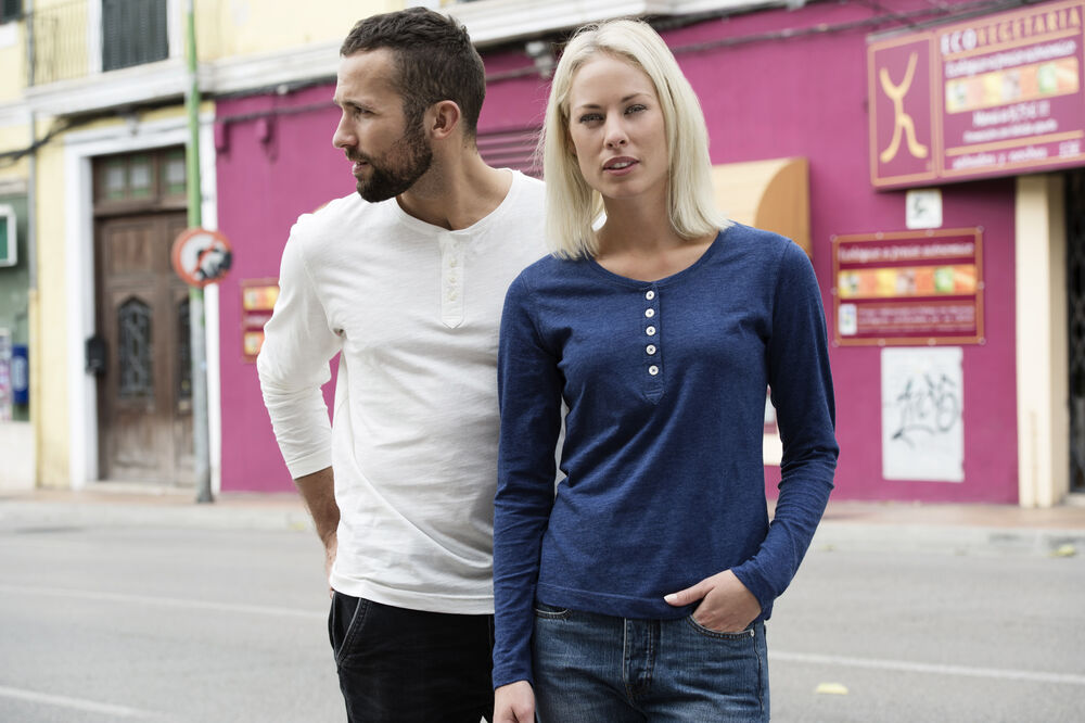 T-shirt manches longues - coupe très tendance - col bouton - Très agréable à porter - Taille européenne
