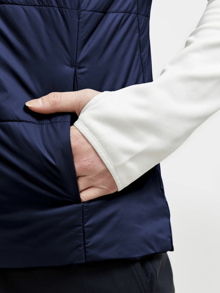Bodywarmer - polyamide recyclé + matelassage recyclé - col en bord côte - 2 poches zippées - sizing fitté • Forme droite • 2 poches latérales zippées • Col en bord côte • Logo CRAFT s/ poitrine droite