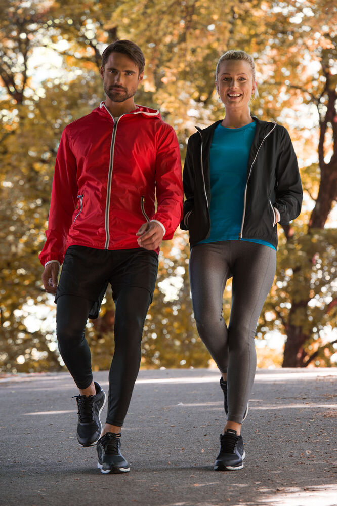 Coupe-vent unisexe moderne avec zips aspect métal + bords de zips contrastés - doublure en mesh - bordures de capuche et de poignets contrastées - élastiques aux poignets - taille européenne