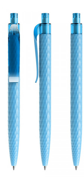 Touch is de nieuwe communicatie. Het patroon in de balpen verwerkt en niet op de balpen geeft een nieuwe dimensie in esthetiek en communicatie. Bij de QS01 als fascinerend veelzijdige driehoekige structuur, die zich telkens anders presenteert voor het oog en wordt ervaren door de vingertoppen als aangename grip. De Q01 in zijn veelzijdige oppervlakte structuur is er in negen matte kleuren, vijf met gepolijste clip / drukknop en vier met transparante clip / drukknop, speciale PMS productie vanaf 5.000 stuks. De kwalitatieve Floating ball® vulling zorgt voor een aangenaam vloeiend schrijven.