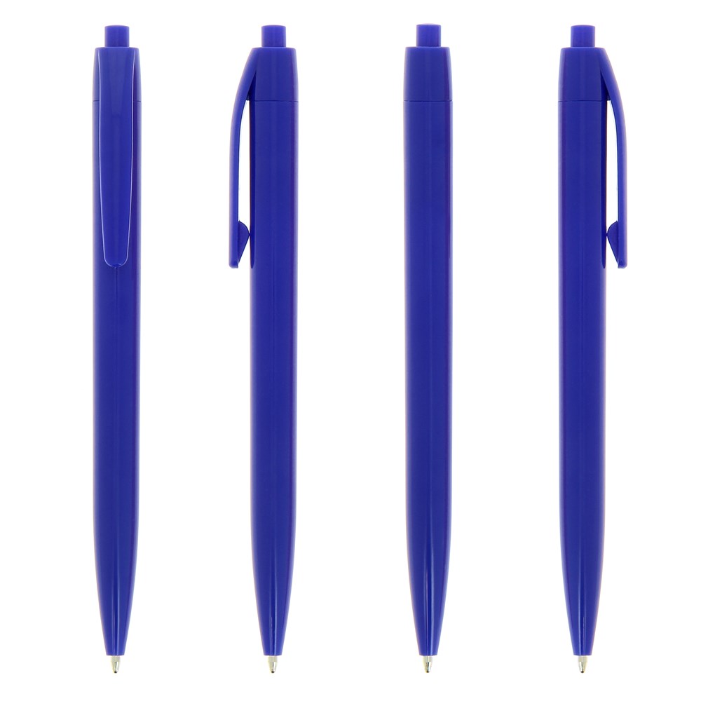 Balpen met drukknop, met een uitgebreid gamma ondoorzichtige kleuren en glanzend gepolijste afwerking.
