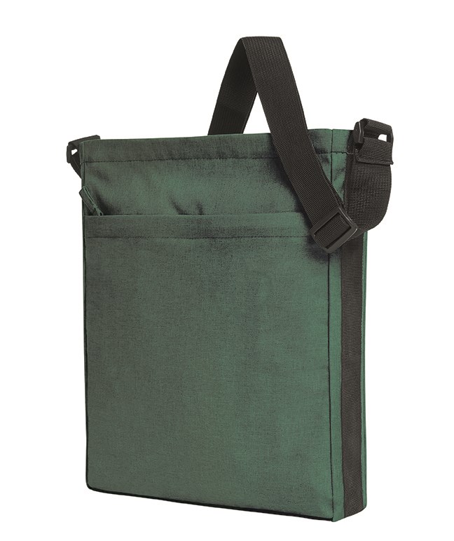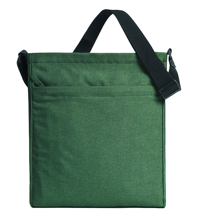 moderne draagtas; rPET-bovenmateriaal; ruim hoofdvak met ritssluiting; voorvak met blinde ritssluiting; in lengte verstelbare draagriem