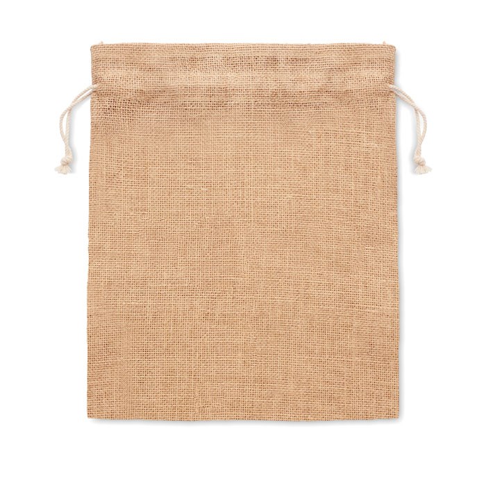 Kleine jute giftbag met trekkoordsluiting. Afmeting ca. 14 x 22 cm.