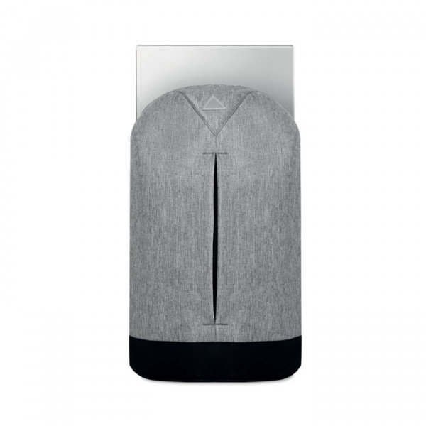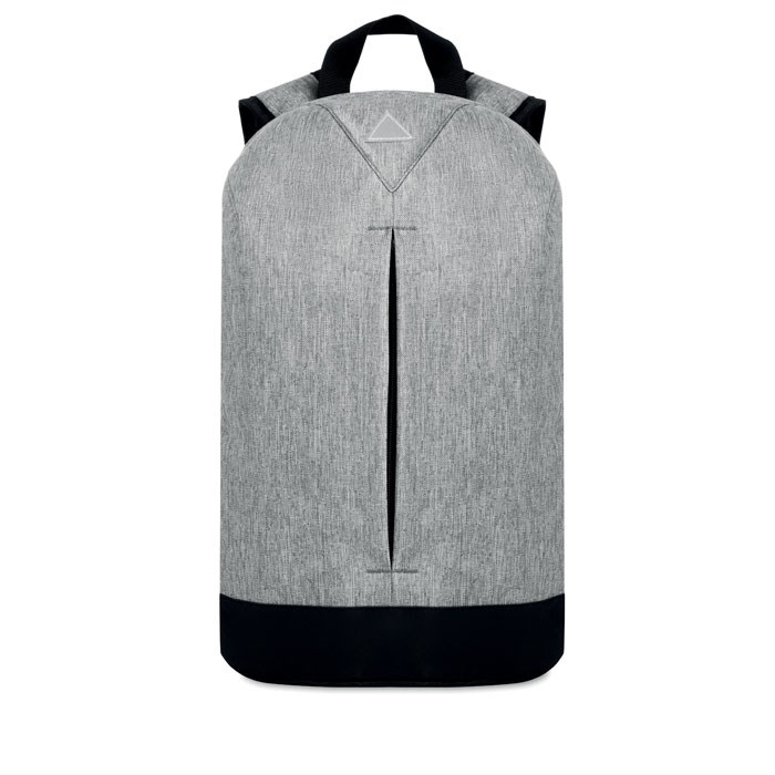 Rugzak in 600D duo-tone polyester met verborgen rits op de rug. Inclusief voorvak met rits, gewatteerd vak voor 13 Inch laptop en gewatteerde schouderbanden.