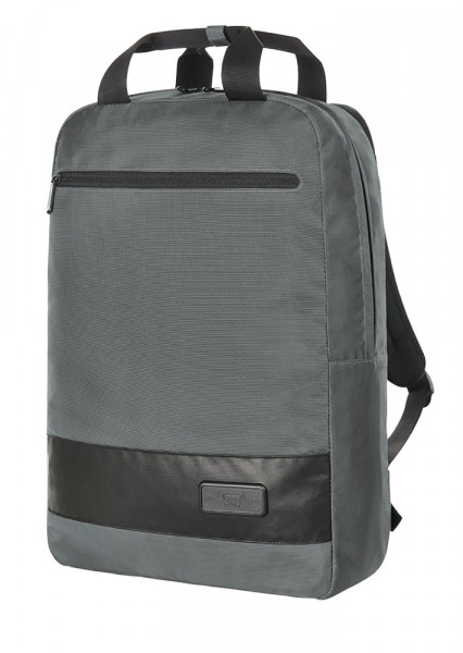 moderne rugzak met constraststreep; HFL®-embleem voor uw logo; groot hoofdvak met 2-wegritssluiting; verstevigd notebookvak, insteekvakken, penlusssen, groot voorvak met ritssluiting: verstevigde achterkant en schouderriemen, handgrepen met manchet met drukknoop
