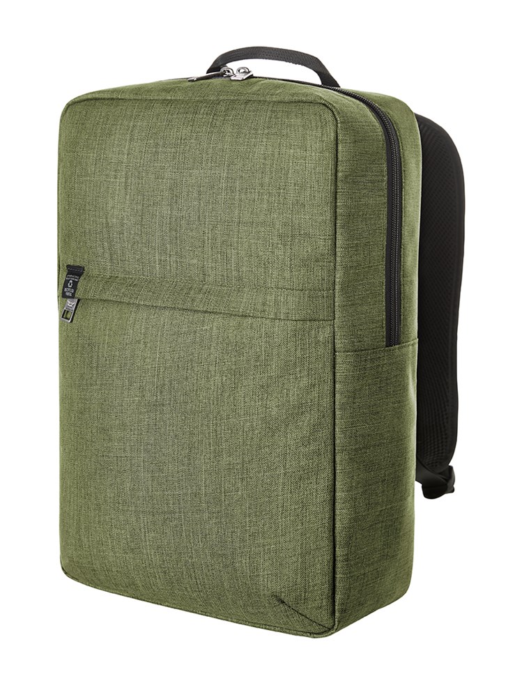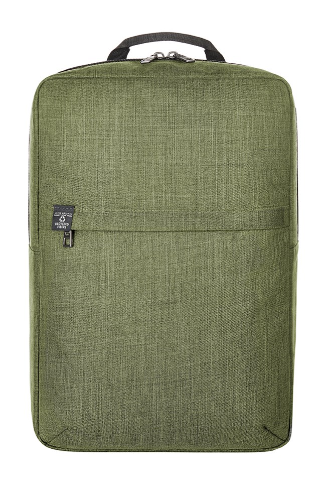 strak afgewerkte rugzak; rPET-buitenmateriaal; groot hoofdvak met 2-wegritssluiting en verstevigd notebookvak; voorvak met ritssluiting; sterk verstevigde achterkant met vak met blinde ritssluiting; in lengte verstelbare en verstevigde schouderriem met rubberen lussen om bijv. zonnebril aan vast te maken; handgreep