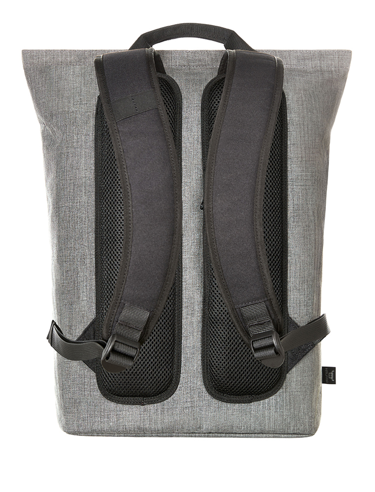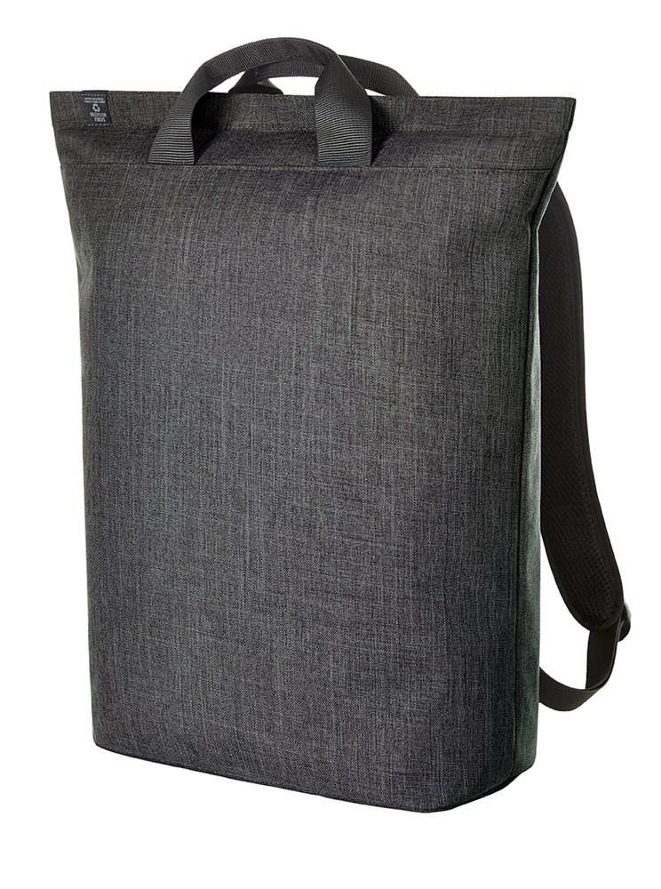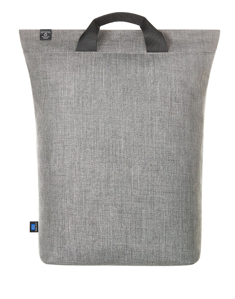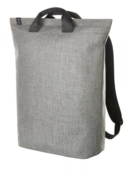 strakke, moderne rugzak; hoofdvak met ritssluiting met verstevigd notebookvak; rPET-buitenmateriaal; waardevolle, metalen accessoires; verstevigde bodem; sterk verstevigde achterkant met vak met blinde ritssluiting; in lengte verstelbare en verstevigde schouderriem met rubberen lussen om bijv. zonnebril aan te bevestigen; handgrepen