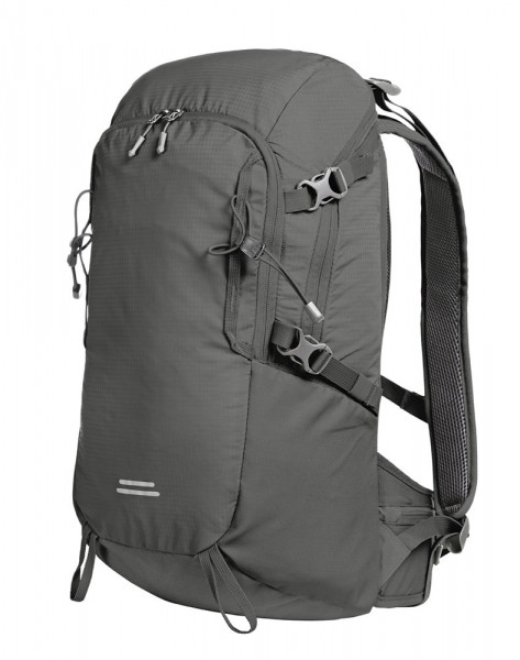 lichtgewicht functionele rugzak met ergonomisch gevormde rug en innovatief honingraatsysteem voor ideale ventilatie en voering; van onderen en van boven in hoogte verstelbaar voor een perfecte pasvorm; in hoogte verstelbare borstriem, gevoerde heupgordel met zakken met ritssluiting; groot hoofdvak met 2-weg ritssluiting en plat insteekvak binnen; opening aan de achterkant voor bijv. koptelefoon of slang van optioneel leverbaar drinksysteem (artikel 1812216); klittenbandlus voor het vastzetten van de drinkslang; 2 voorzakken met ritssluiting; 2 gazen zijvakken; zijdelingse gordels die vastgetrokken kunnen worden; functionele lusband op de voorzak; decoratieve reflecterende opdruk; wandelstokbevestigingen; bodemvak met regenhoes; handgreep