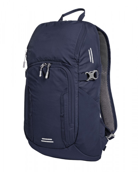 lichtgewicht functionele rugzak voor overdag en biken met innovatief honingraatsysteem voor ideale ventilatie en voering; in hoogte verstelbare borstriem, zijdelings gevoerde heupgordel; groot hoofdvak met 2-weg ritssluiting en plat insteekvak binnen; opening aan de achterkant voor bijv. koptelefoon of slang van optioneel leverbaar drinksysteem (artikel 1812216); klittenbandlus voor het vastzetten van de drinkslang; 2 voorzakken met ritssluiting; 2 gazen zijvakken; zijdelingse gordels die vastgetrokken kunnen worden; functionele lusband op de voorzak; decoratieve reflecterende opdruk; handgreep