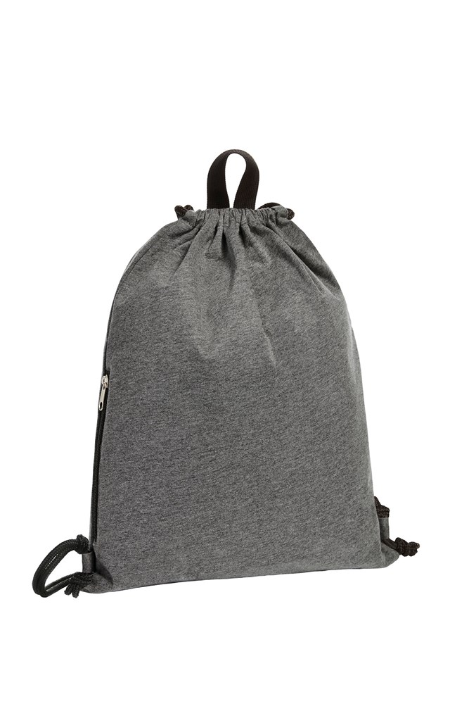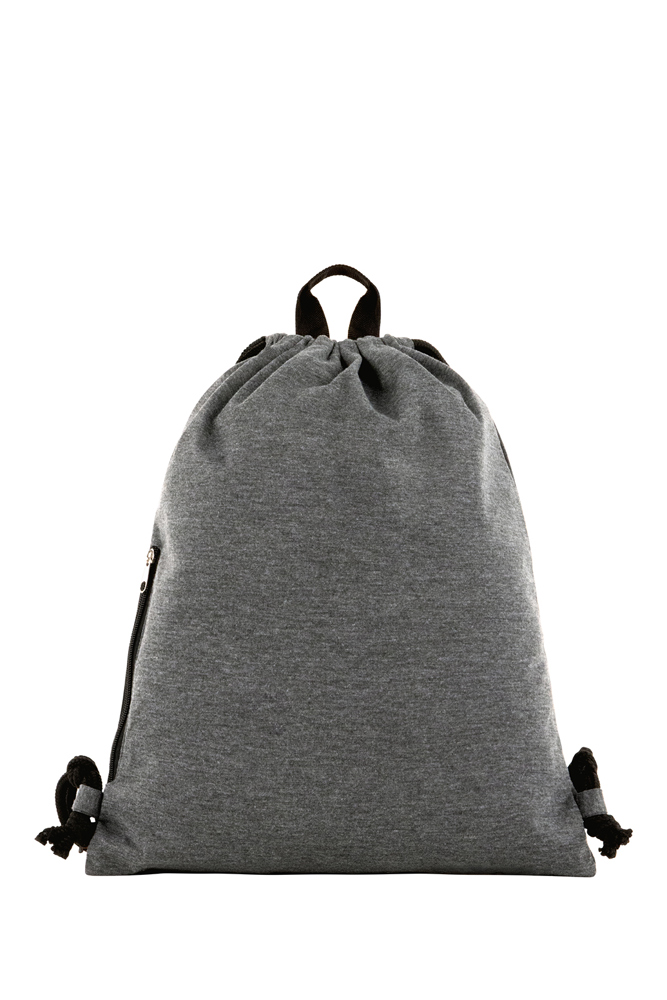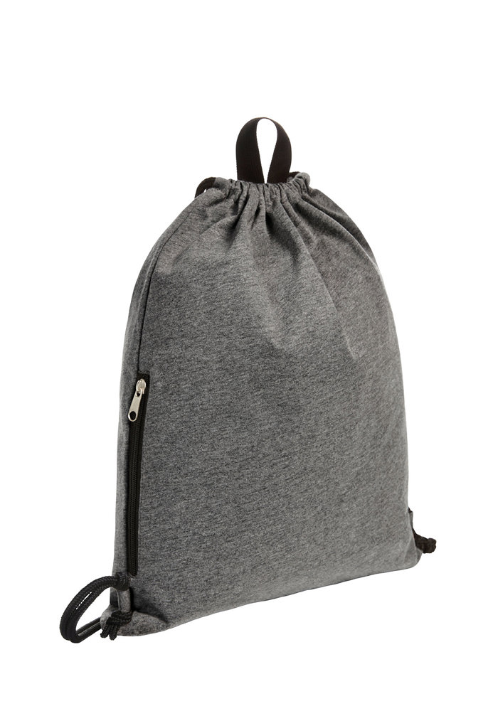 grote trekzak-rugzak van aangenaam fijne jersey; hoofdvak met zijvak met ritssluiting; trekkoord; draaglussen